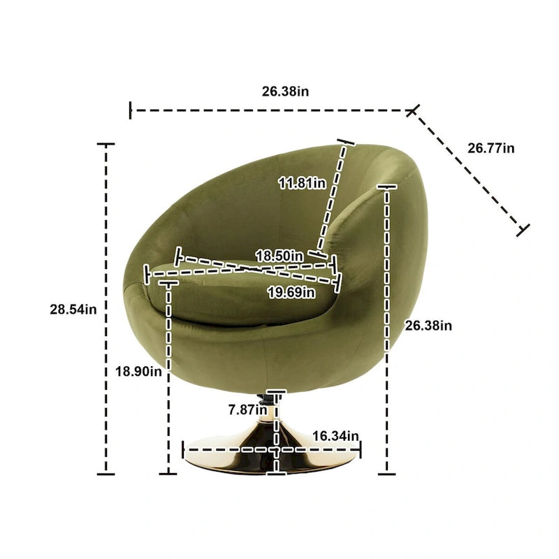 Fauteuils d'appoint HOMEFUN en velours pivotants à 360 degrés, forme tonneau, à dossier ergonomique