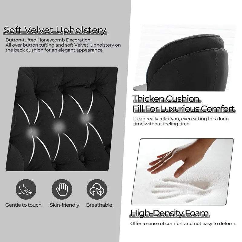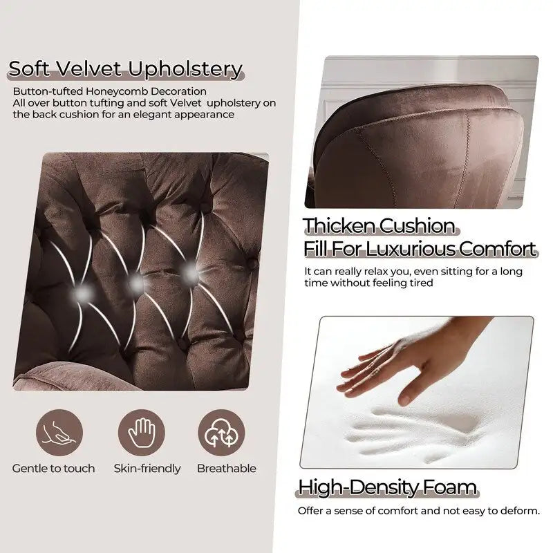 Le revêtement en velours apporte une touche de glamour tout en garantissant une assise douce et confortable. La conception ergonomique du fauteuil et du repose-pieds permet de se détendre pendant des heures, créant ainsi l'endroit idéal pour lire, savourer une tasse de thé ou simplement profiter d'un moment de tranquillité.