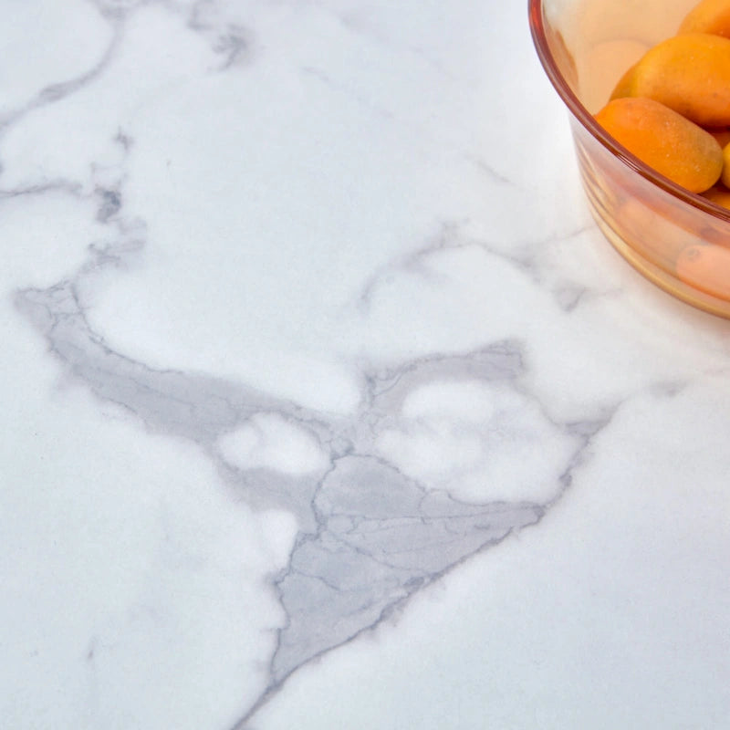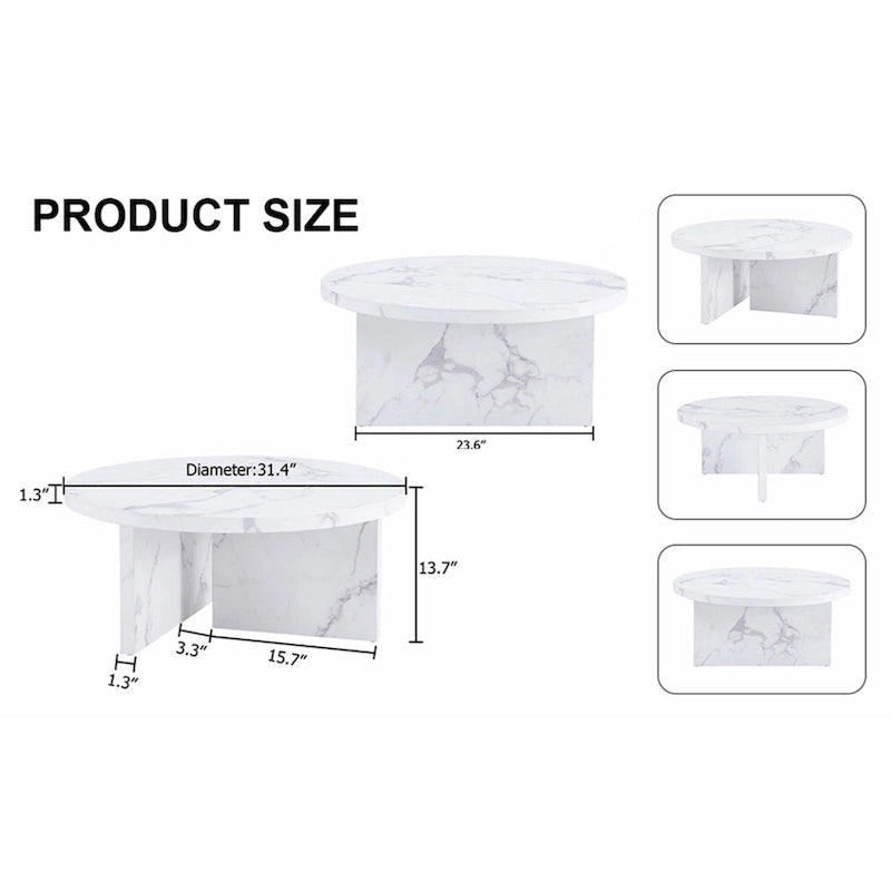 Table basse ronde en MDF blanc à motifs, idéale pour les petits espaces et les salons.