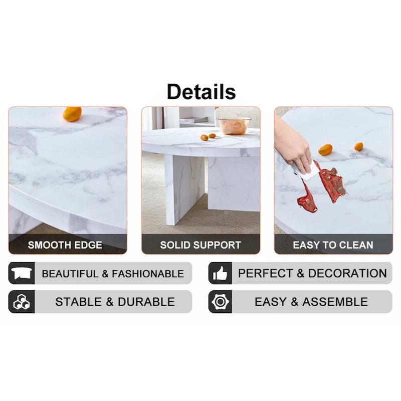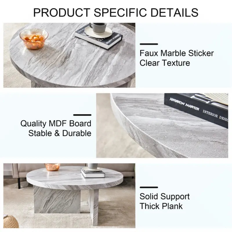 Durables : Nos tables basses en MDF sont fabriquées avec soin à partir de matériaux de haute qualité pour une durabilité optimale. Leur structure robuste assure une excellente stabilité. Design circulaire : Notre table basse présente un design circulaire aux bords soigneusement travaillés, créant ainsi un environnement plus sûr pour vous et vos proches. L'absence d'angles vifs minimise les risques de collision ou de blessure. Instructions et outils de montage inclus pour un montage facile. La plupart des gens peuvent l'assembler en 10 à 15 minutes. Remarque : Les couleurs affichées sur notre site web sont données à titre indicatif. Les couleurs réelles du produit peuvent légèrement varier en fonction des réglages de votre écran.